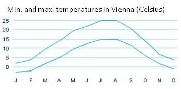 Temperatures and precipitation in Vienna: